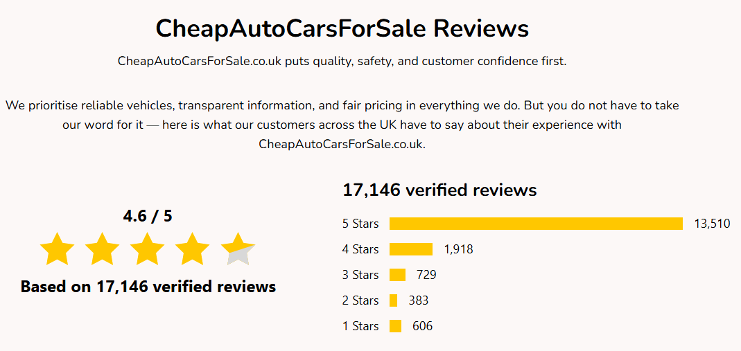 I was looking for a reliable car on a tight budget and CheapAutoCarsForSale.co.uk delivered exactly that. Clear communication, fair pricing, and no pressure at all. Highly recommended.